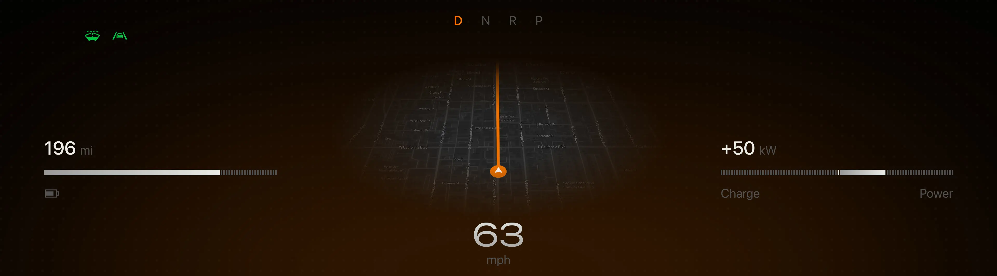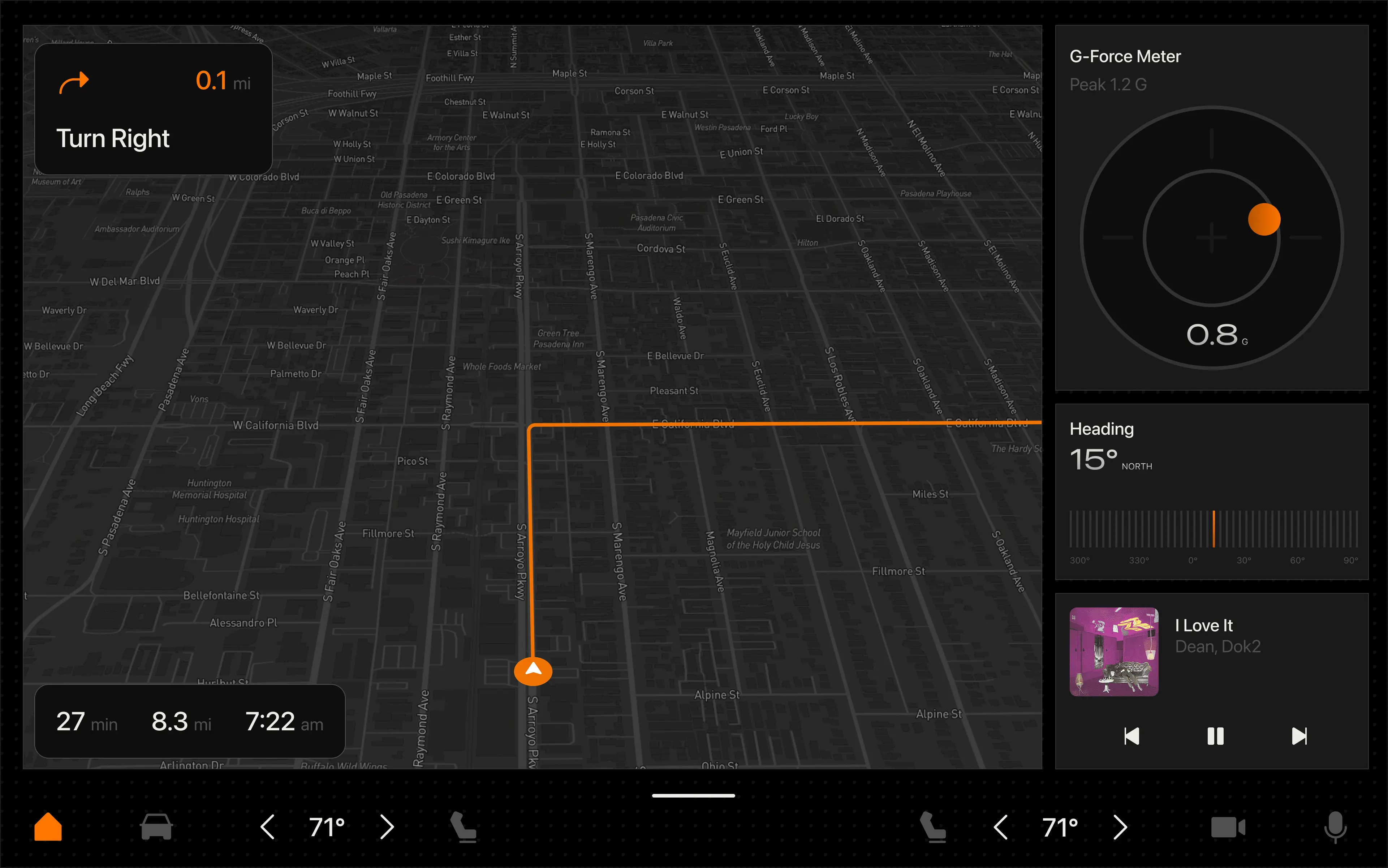 03. Designed technical instrument clusters for G-force, energy consumption, and heading, prioritizing glanceability and safety.